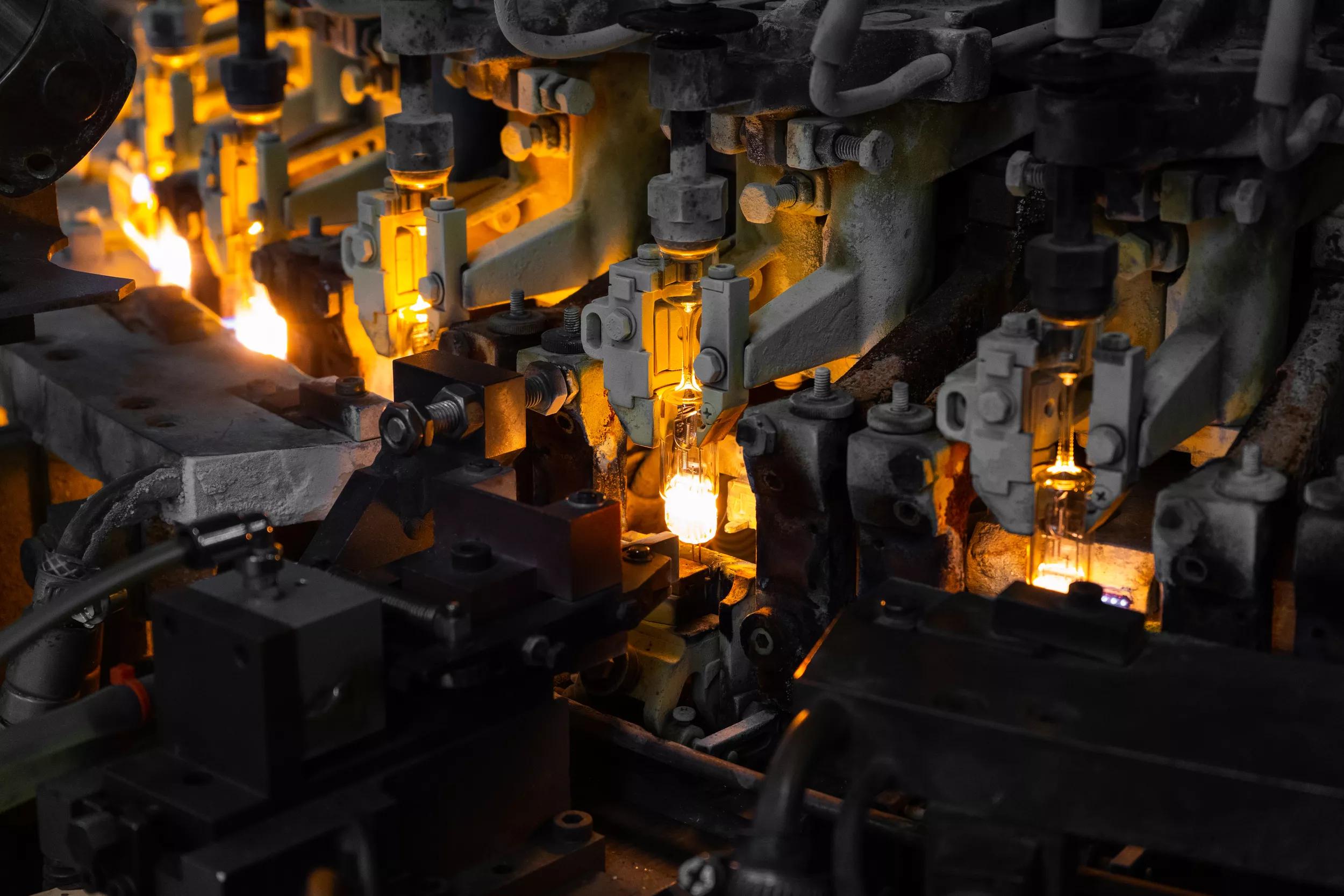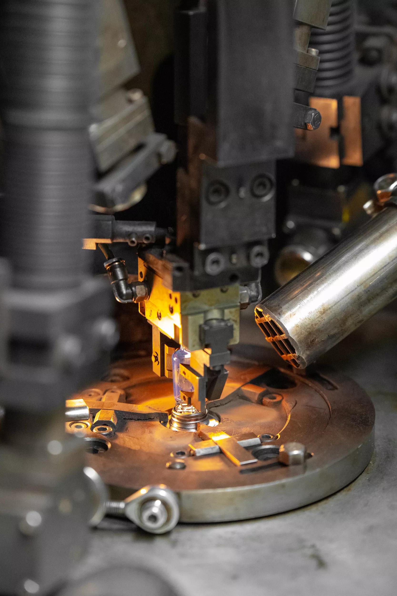 - Am Standort Herbrechtigen werden Lampengestelle in Glas eingeschmolzen und auf die höchsten Kundenanforderungen und deren Positioniergenauigkeit justiert.